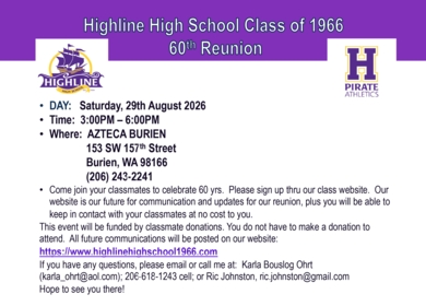 If your name is not already on this site, but you were part of the Highline High School Class of 1966, contact us and your name will be added.